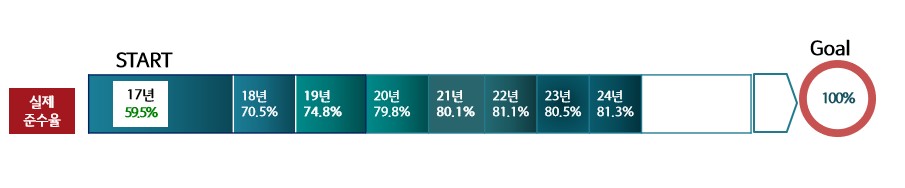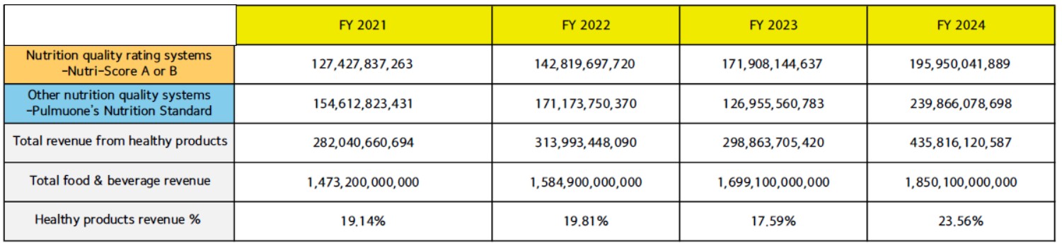 풀무원은 더욱 안전하고 영양적으로 우수하며 건강한 제품 개발을 목표로 연구를 지속하고 있습니다. 과다 섭취할 경우 부정적 영향이 큰 ‘나트륨, 당류, 포화지방’의 함량을 우선적으로 줄이도록 관리함으로써 영양불균형의 문제를 개선해 가고 있습니다. 2017년 개정된 풀무원 영양관리기준은 준수율 59.5%에서 시작하였습니다. 2025년 설정한 영양균형 제품의 목표는 기준 준수율 91%이며, 매년 준수율이 증가하였고, 2024년 준수율은 81.3%입니다.